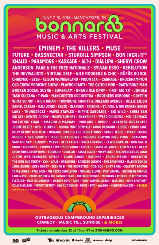 2018 Bonnaroo Lineup Includes Sturgill Simpson, Midland, Old Crow Medicine Show, Brothers Osborne & More