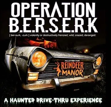 Reindeer Manor has figured out how to go beyond keeping you safe, a drive through haunted experience called Operation Berserk! From the comfort of your car you will be able to explore a 32-acre estate, like you’ve never seen before! As you make your way through the post-apocalyptic wasteland, you will tune your radio to special station to help you navigate to the safety of outpost 59. This is a full scare, no contact experience – only $50 per car. Open 8pm – midnight Friday’s and Saturday’s through Halloween.
