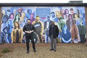 On the outside wall of the building, a “Famous Friends” mural honors influential and notable MTSU alumni…that not only includes himself and fellow MTSU alum and country singer Eric Paslay, but another very special MTSU grad as well–Chris’ mom Becky Harris, who is a founding partner at Nashville’s Huskins-Harris Business Management firm.
