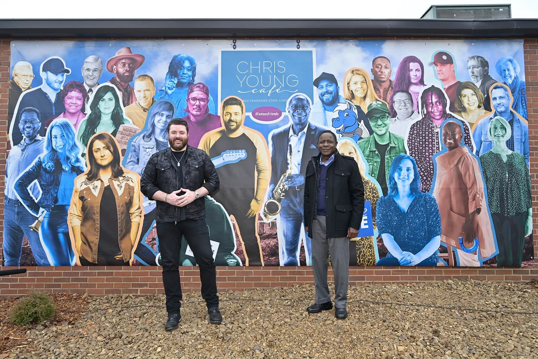 On the outside wall of the building, a “Famous Friends” mural honors influential and notable MTSU alumni…that not only includes himself and fellow MTSU alum and country singer Eric Paslay, but another very special MTSU grad as well–Chris’ mom Becky Harris, who is a founding partner at Nashville’s Huskins-Harris Business Management firm.