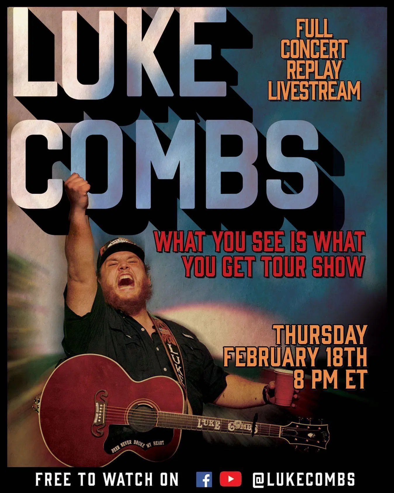 Luke is going to replay the full recording of his concert from Rupp Arena in Lexington, KY — This was the next to last show that he played last year on the What You See Is What You Get Tour.
