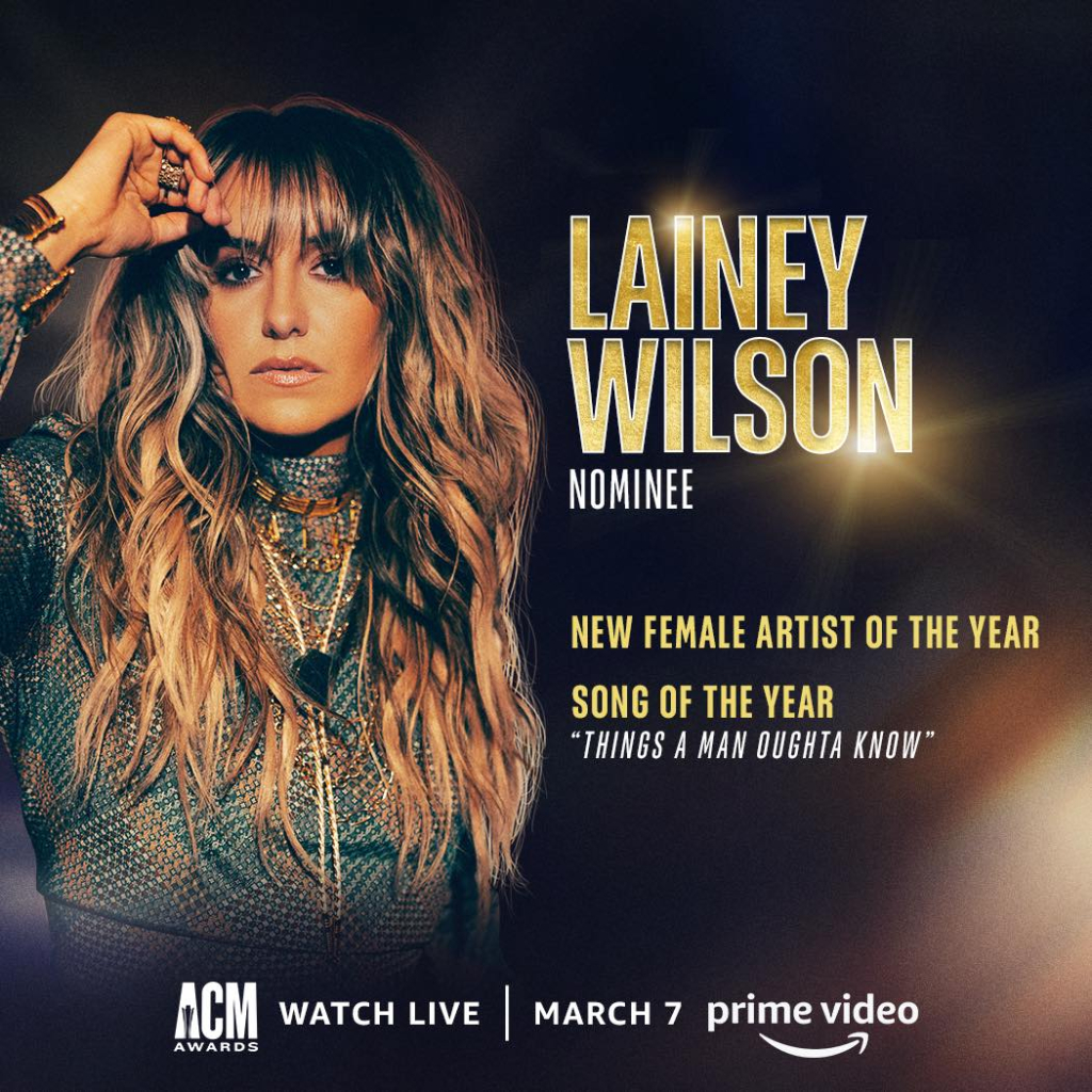 Congrats to Lainey Wilson on her 57th Academy of Country Music Awards nominations for New Female Artist Of The Year and Song Of The Year for “Things A Man Oughta Know.”