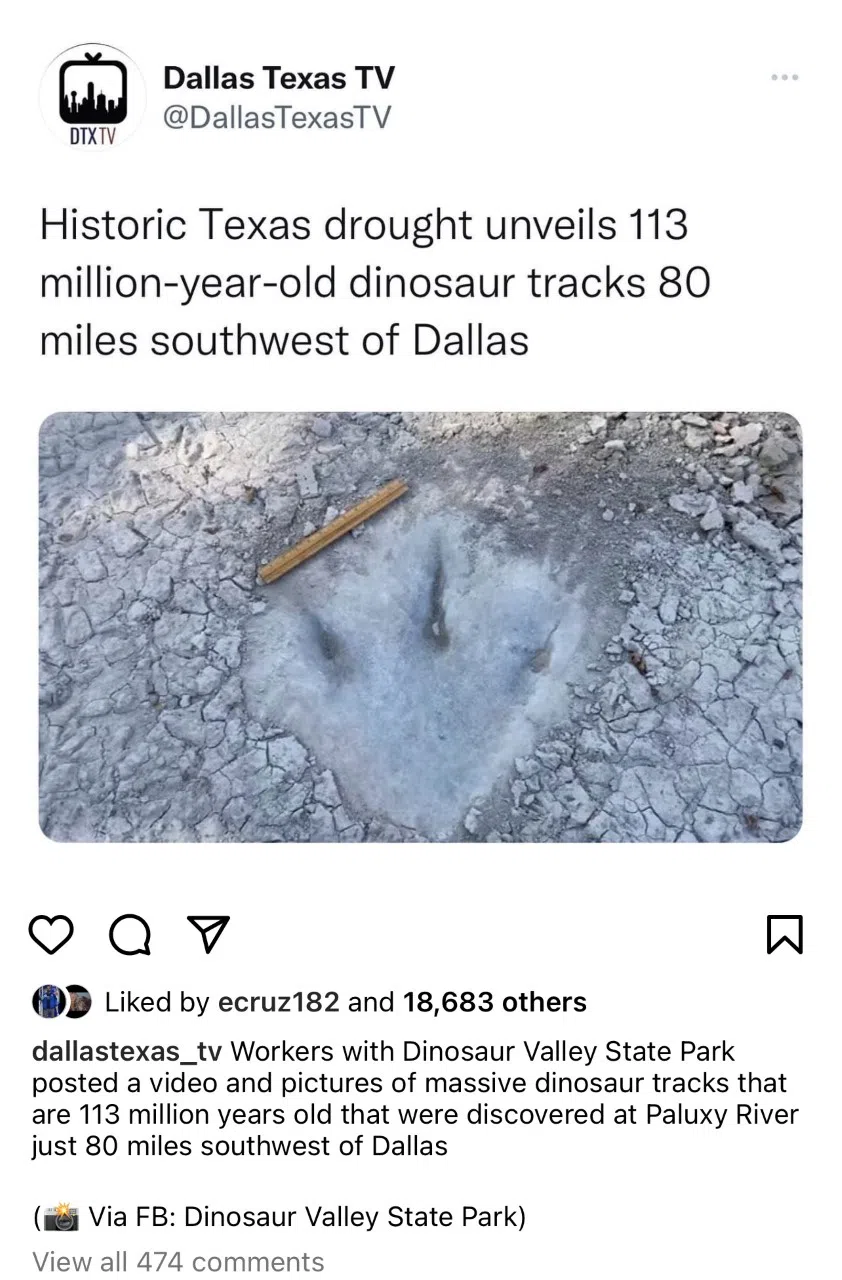 LOOK: 113-million-year-old dinosaur tracks newly discovered in North Texas