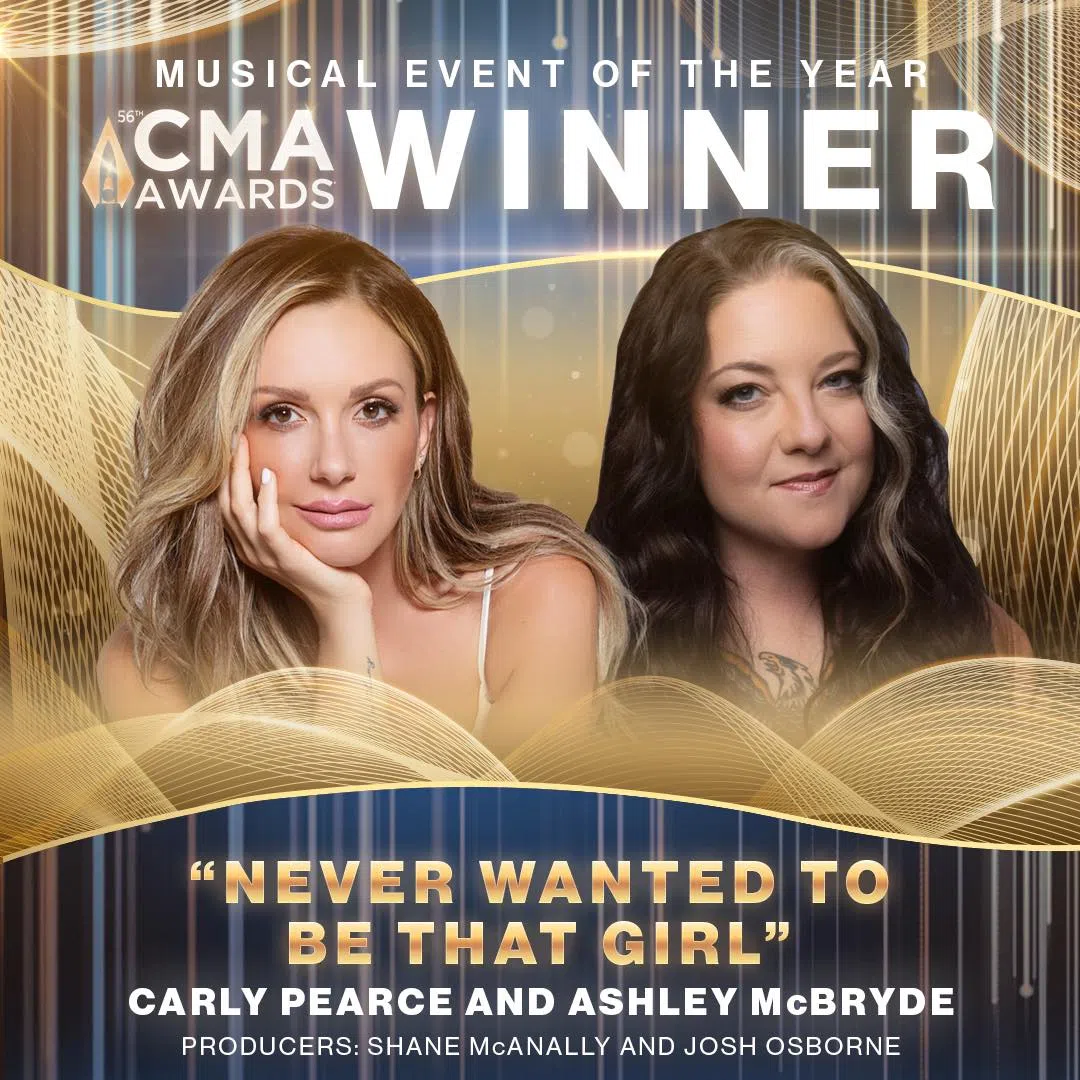 Congrats to Carly Pearce and Ashley McBryde as their hit song, “Never Wanted To Be That Girl,” was announced as a CMA Award winner!