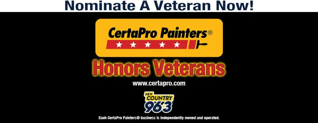 May is military month and at New Country 96.3 we’ve teamed with CertaPro Painters® to honor a military veteran with a $5000 paint job from CertaPro Painters®.