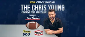 Our friend and the biggest Cowboys fan in Nashville, Chris Young returns to talk Cowboys. He joins Hawkeye and Michelle each week the day after every Cowboys game ay 8:50am to share his thoughts about the boys. And it’s all presented by Tom Thumb – DFW’s Grocer since 1948