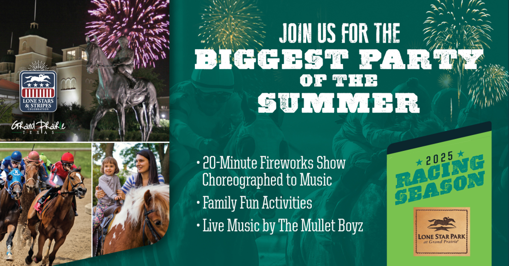 Join New Country 96.3 at Lone Star Park on July 3 for an unforgettable day of fun, music, and celebration at Lone Stars & Stripes! Gates open at 3 PM, and the excitement lasts all day long.