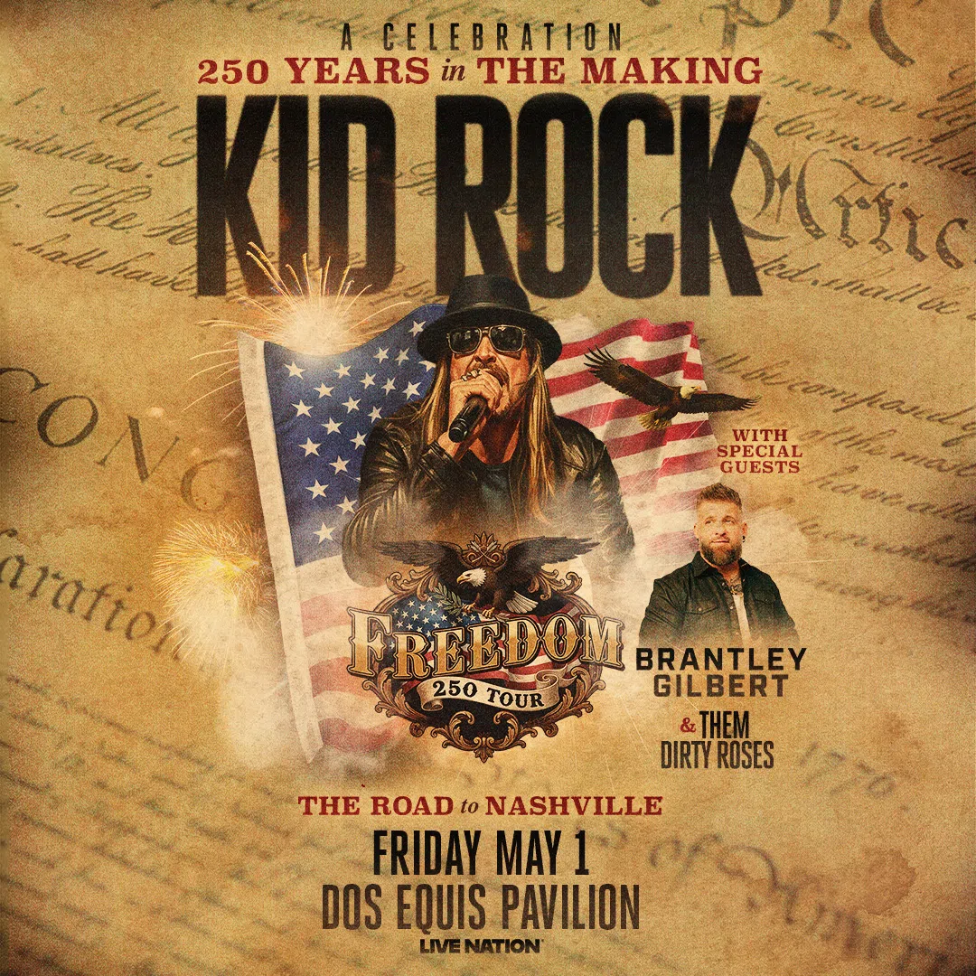 Kid Rock brings the Freedom 250 Tour to Dos Equis Pavilion on Friday, May 1st, 2026. Known for blending rock, country, and hiphop influences, Kid Rock delivers a show packed with crowdpleasing hits an...