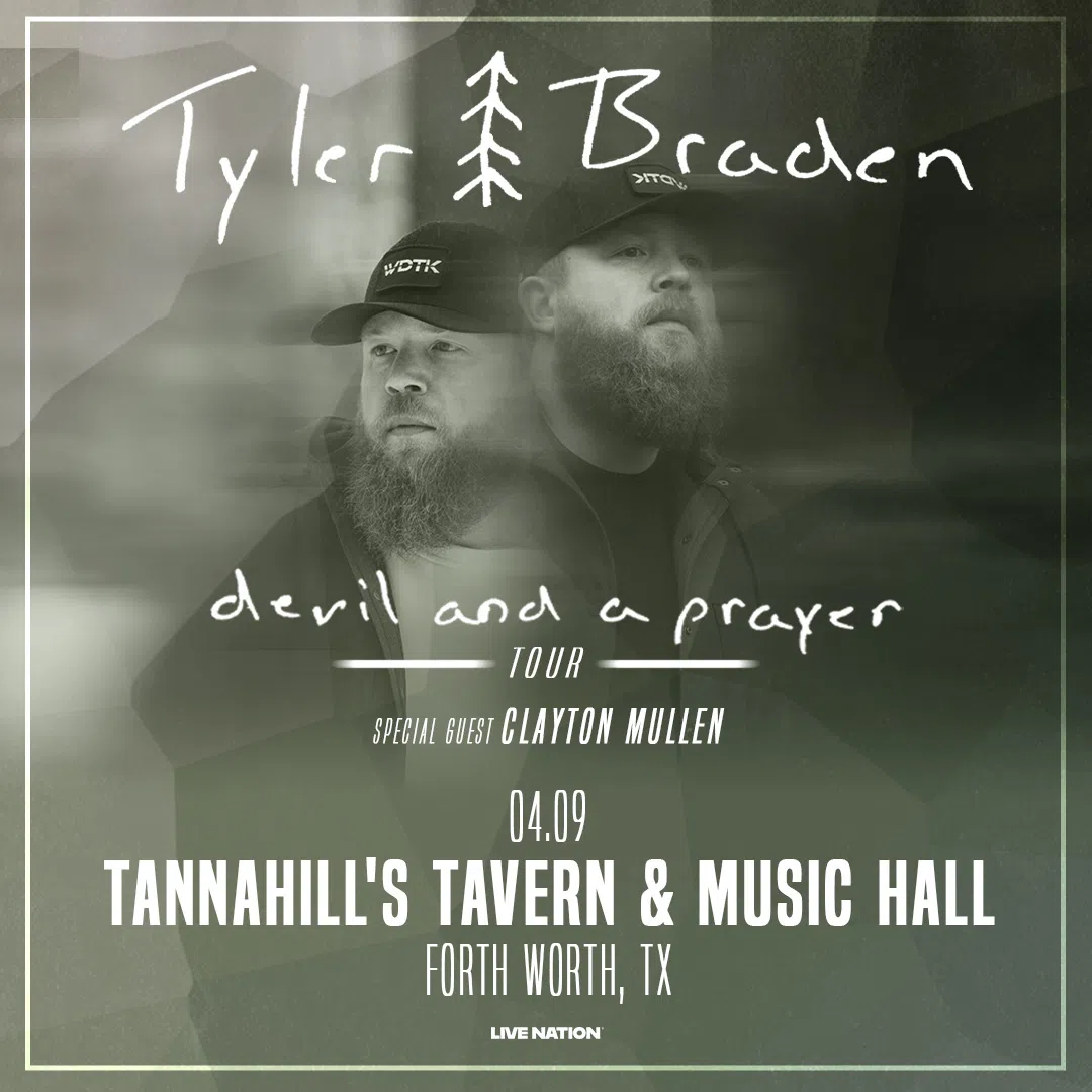 The Devil and a Prayer Tour is coming to Tannahill's Tavern & Music Hall in Fort Worth on April 9, and you don't want to miss this show! Tyler Braden brings raw energy and heartfelt lyrics to the ...