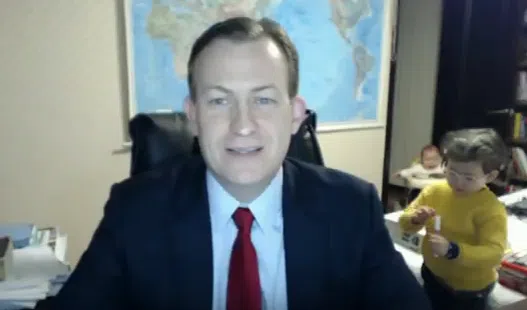 I can’t imagine how dad felt when he saw his little ones walk into the room. Its pretty hilarious to watch. You see mom rush in, trying to get the kids out of the shot. The political science pro...