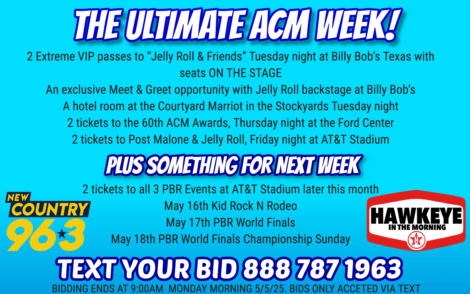 THE ULTIMATE ACM WEEK – “TEXT” YOUR BID -888 -787-1963