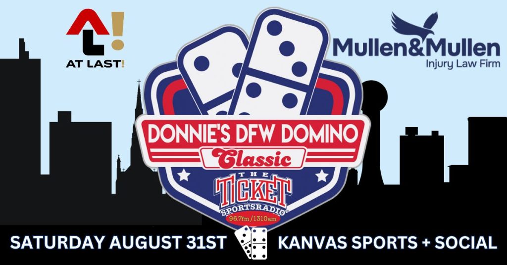Come join us for the Mullen & Mullen Injury Law Firm Donnie’s DFW Domino Classic, on Saturday August 31st at Kanvas Sports + Social.